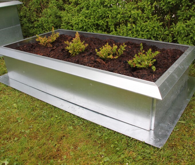 Højbed firkantet varmgalvaniseret med sneglekant. Lavet af 1,5 mm pladetykkelse ogsneglekanten er en dele af den bukket side. Ikke noget løs der efter monteres. Højden er 25 cm