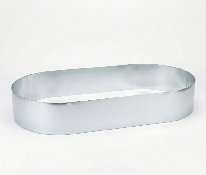 Ovalt varmtgalvaniseret højbed er lavet af 1 mm pladetykkelse. Overkanten er bukket 180° og derved er der ikke en skarp kant. Højden er 26 cm