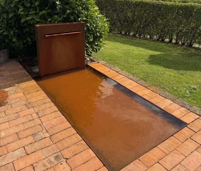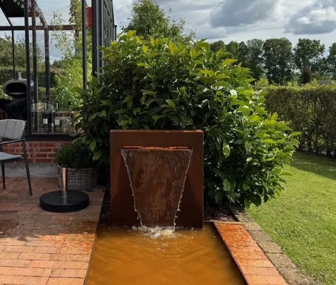 Med dette spejlbassin med vandfald får du et produkt, der både er visuelt betagende og praktisk. Den naturlige patina, der udvikles på Cortenstålet over tid, gør hvert bassin unikt og garanterer et produkt, der kun bliver smukkere med årene.